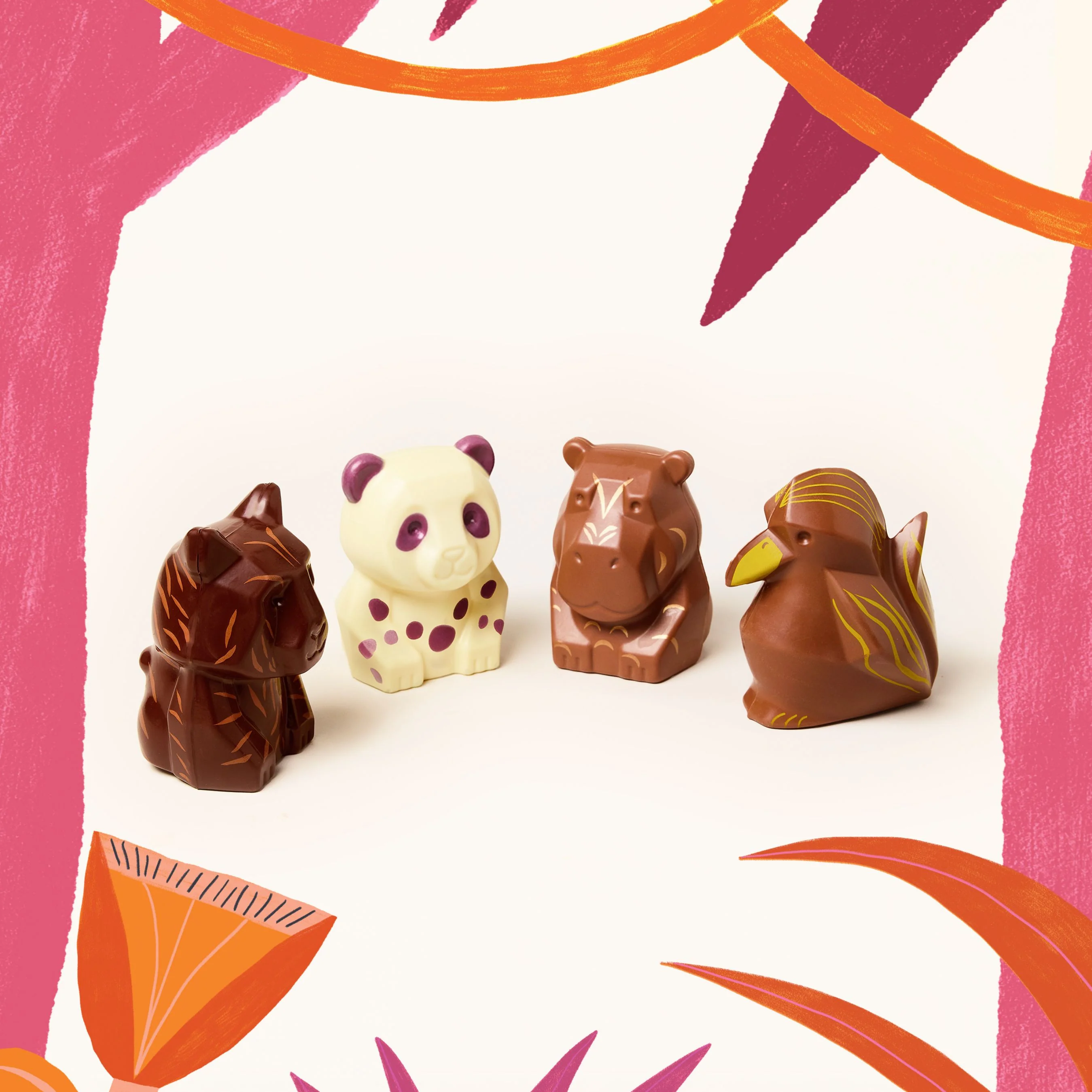 Pour une chasse encore plus ludique, chaque moulage Héros de la Chaponie est accompagné d’une carte personnage et d’une planche de tatouages éphémères.